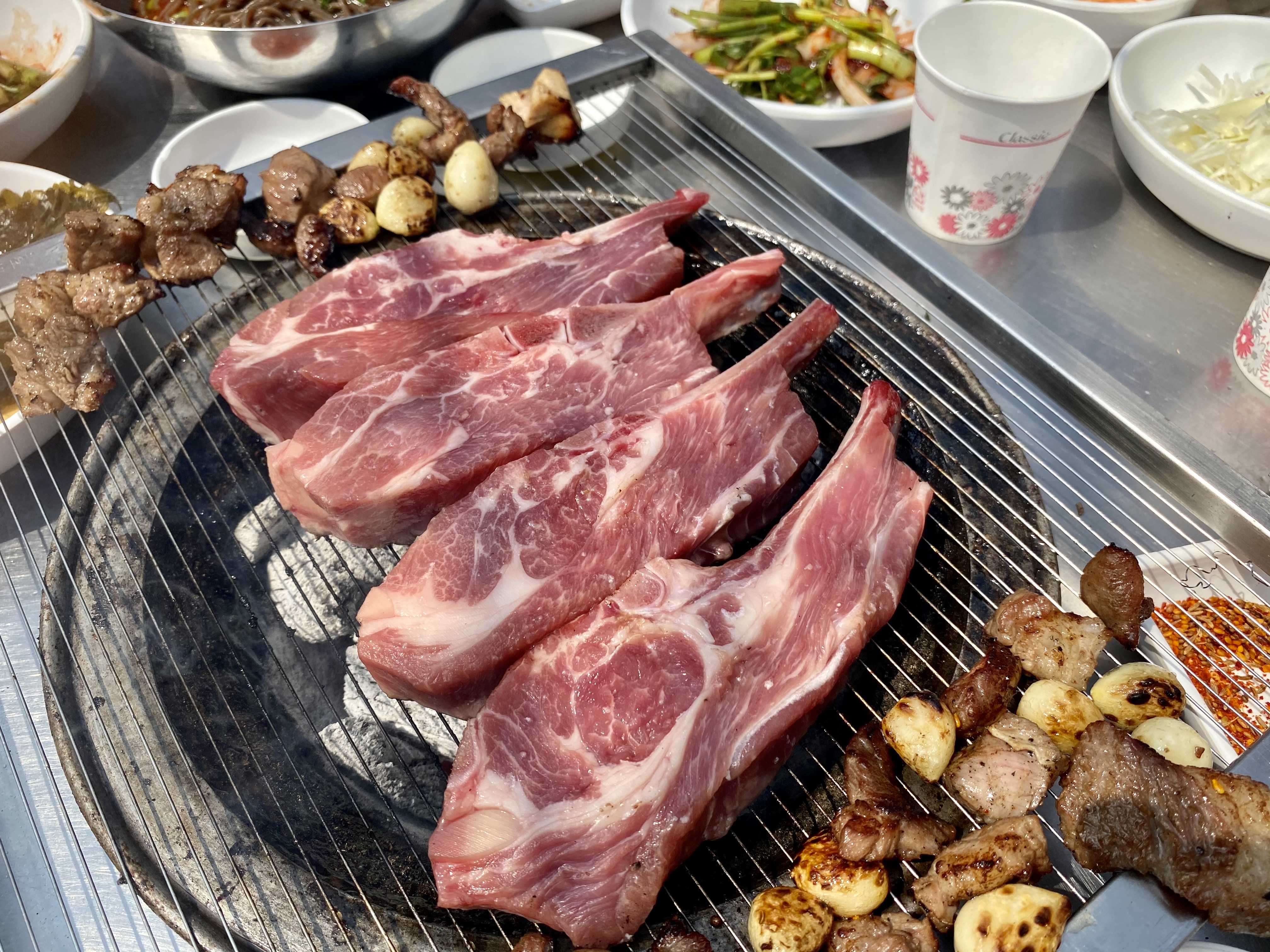 삼각갈비 3인분, 갈비살 1인분, 메밀막국수 3인분을 시켰습니다