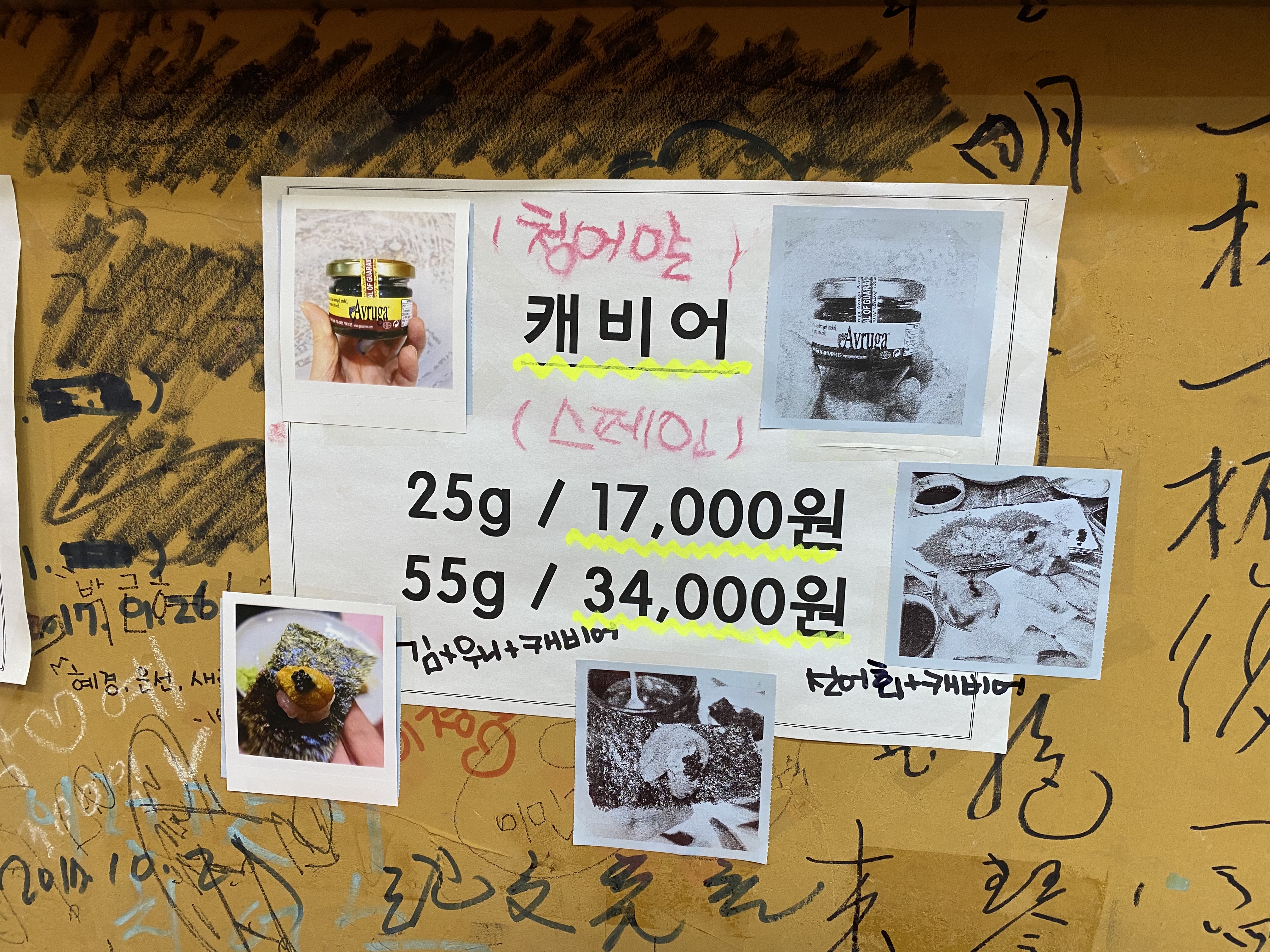 김 + 우니 + 캐비어 + 와사비 + 초 + 간장