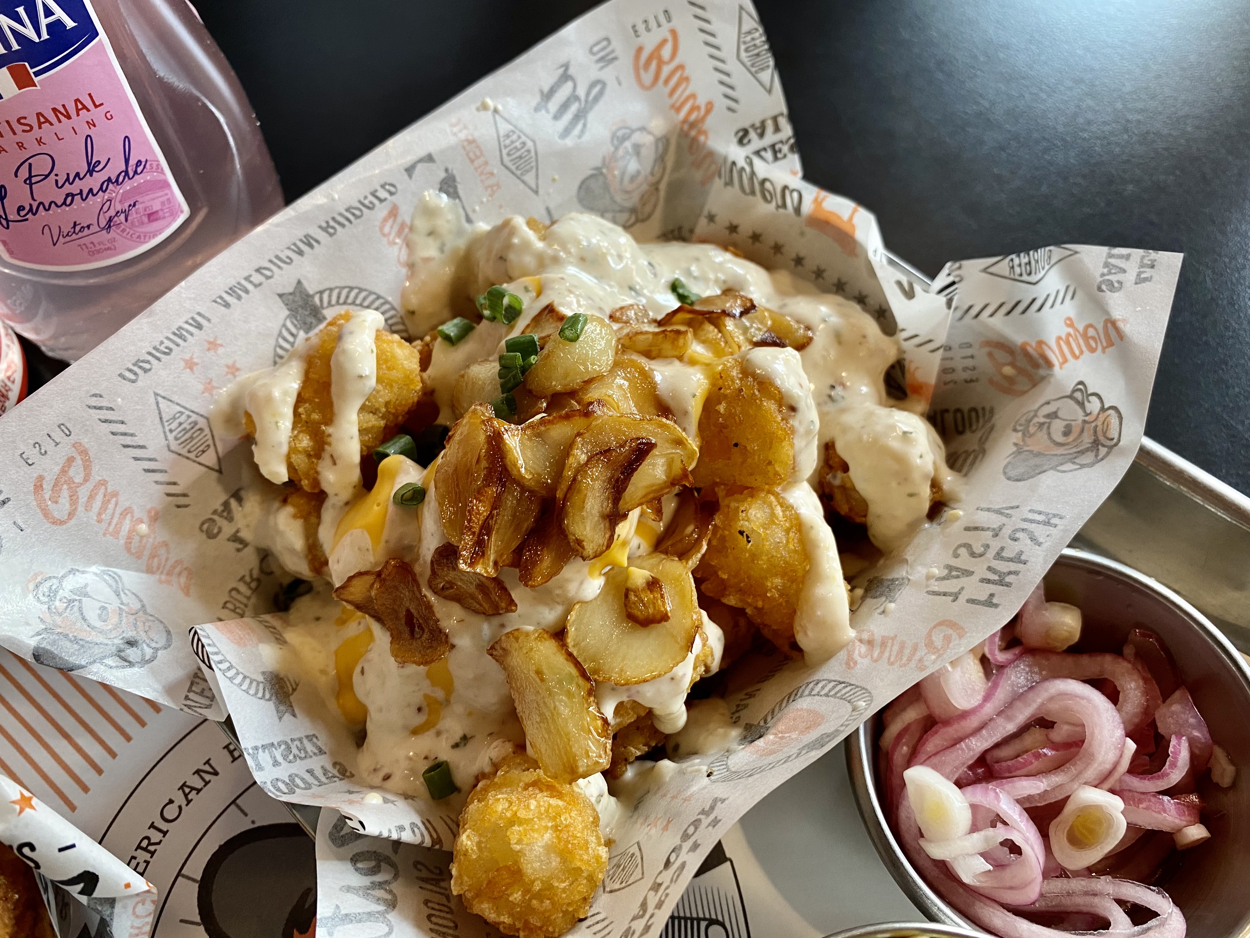 저는 제스티 갈릭 더블, 와사비 쉬림프, 콘샐러드, 감자튀김은 갈릭치즈를 주문했습니다